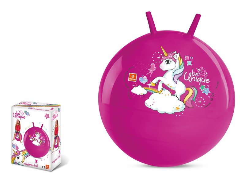 Dětský míč na skákání Kangaroo Jednorožec od italské společnosti Mondo je léty ověřená klasická verze skákacího míče – míč má dvě gumová držadla, za která se dítě při hře drží. Skákací míč má nádhernou růžovou barvu a pěkný potisk jednorožce. Hopsadlo Kangaroo Jednorožec má průměr 40+ cm a je vyrobeno z kvalitního a odolného PVC materiálu, který vydrží i hrubší zacházení. Hračka je vhodná pro děti od 3 let. Maximální zatížení 50 kg. Míče na skákání pro děti nebo pokud chcete, skákadla, skákací míče či hopsadla jsou mimořádně zábavnou a už tak trochu i tradiční hračkou pro děti.