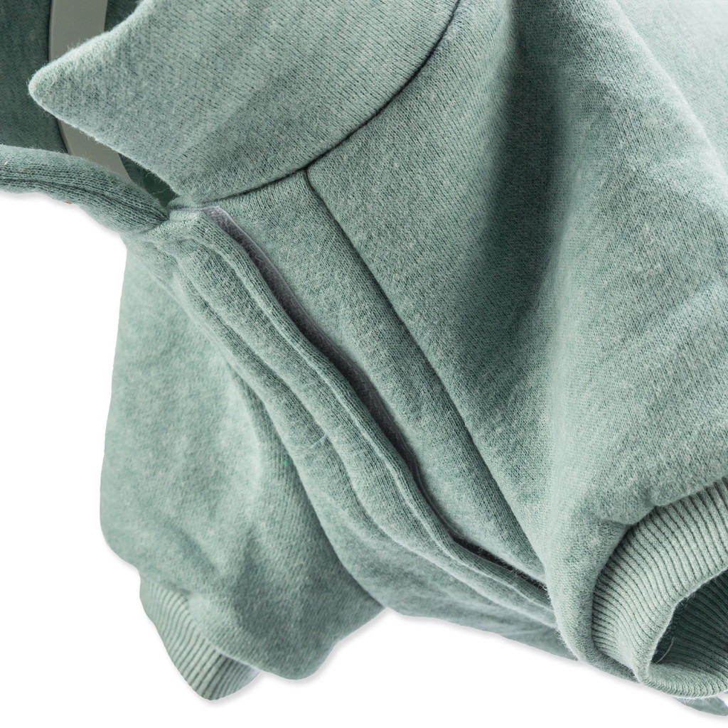 Zapínání na suchý zip v oblasti hrudníku a břicha umožňuje snadné oblékání i svlékání – bez zvedání tlapek a bez stresu. Mátově zelená barva dodává mikině svěží vzhled, který bude vašemu pejskovi slušet doma i venku.