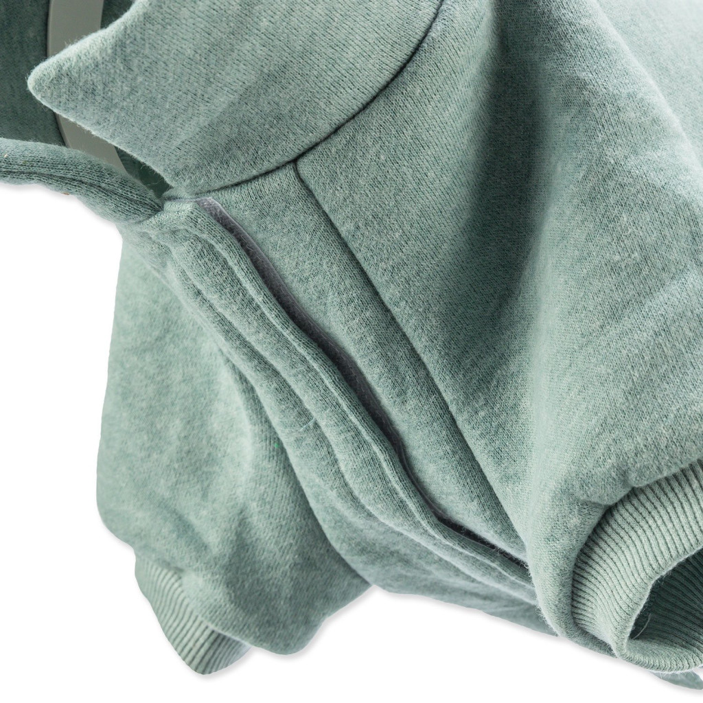 Zapínání na suchý zip v oblasti hrudníku a břicha umožňuje snadné oblékání i svlékání – bez zvedání tlapek a bez stresu. Mátově zelená barva dodává mikině svěží vzhled, který bude vašemu pejskovi slušet doma i venku.