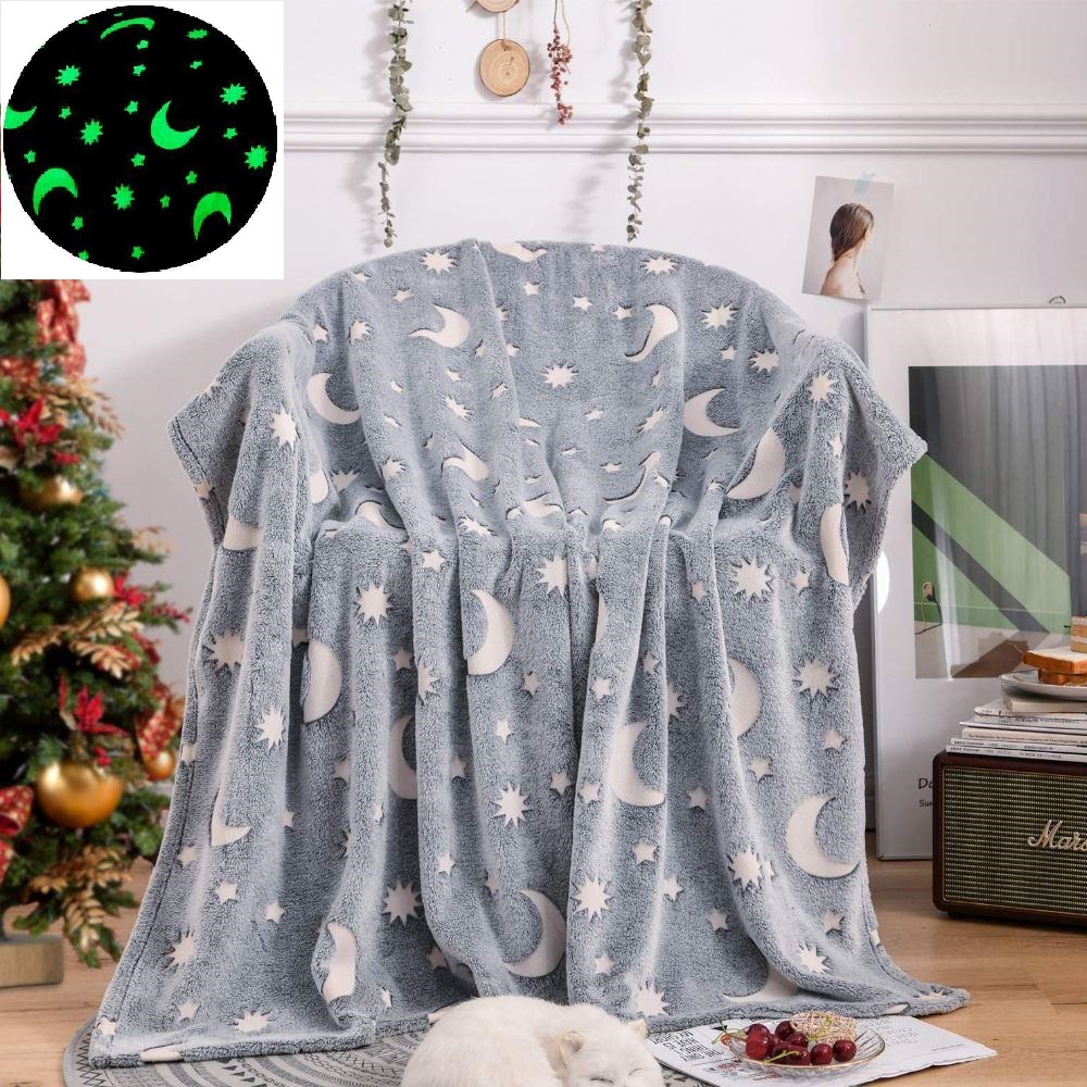 Mikroplyšová deka v neutrální šedé barvě je měkká, hebká a velmi příjemná na dotek. Motiv hvězdiček a měsíčků ve tmě svítí. Stačí, když deku necháte před den na denním světle, kde se „nabije“ a v noci bude krásně zářit.