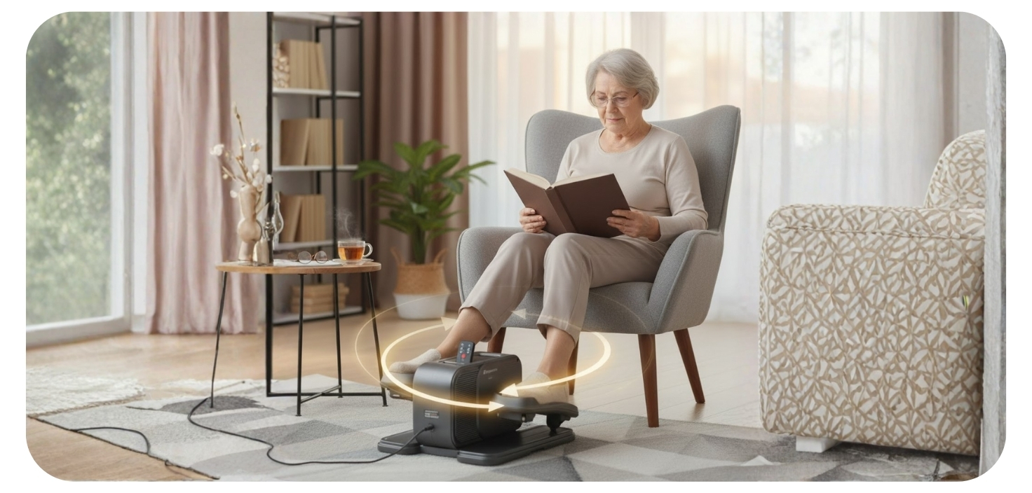 Mini eliptical inSPORTline Elnero přináší možnost pohybu doslova pro každého – i pro ty, kteří se nemohou plně opřít o vlastní sílu. Díky elektrickému pohonu rozhýbe nohy bez námahy, podpoří správnou funkci krevního oběhu a pomůže udržet svaly aktivní i v období, kdy běžné cvičení není možné. Je ideální pro seniory, pro osoby v rekonvalescenci po úrazech i všechny, kteří chtějí svému tělu dopřát šetrný, ale účinný pohyb přímo z pohodlí židle.