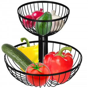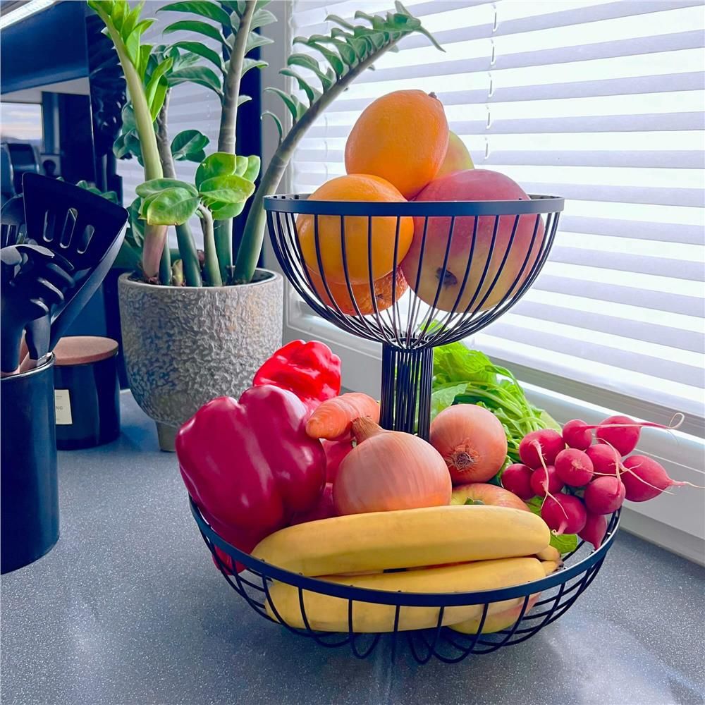Díky dvěma patrům poskytuje dostatek prostoru pro uložení různých druhů potravin, zatímco drátěný design zajišťuje volnou cirkulaci vzduchu, aby se ovoce a zelenina rychle nekazily. Matný povrch dodává výrobku moderní vzhled, který se snadno kombinuje s různými styly kuchyňského interiéru. Tento etažér se skvěle hodí nejen do domácností, ale také do kaváren, restaurací nebo hotelů.