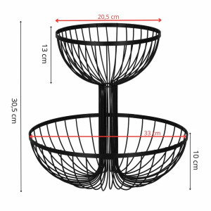 Mísa na ovoce 2 patra drátěná SPRINGOS ORBIT černá je praktický a stylový doplněk, který umožňuje přehledné a estetické uspořádání ovoce a zeleniny.