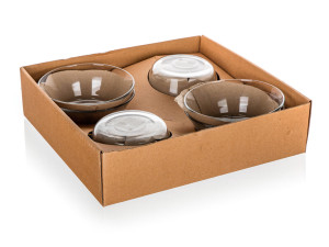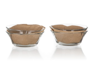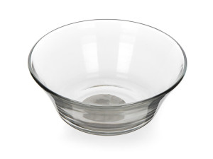 Skleněná miska je vyrobena z čirého, hladkého skla a svým kónickým tvarem umožňuje skládat misky na sebe.