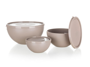 Dotaz na produktSada misek CULINARIA o objemu 0,5 l, 1,2 l a 2,5 l má v kuchyni široké využití. Jsou vhodné nejen k ukládání potravin, ale i k servírování. Misky jsou vyrobené z odolného plastu a vhodné do myčky na nádobí.
