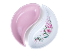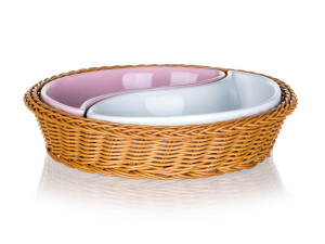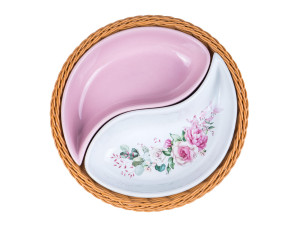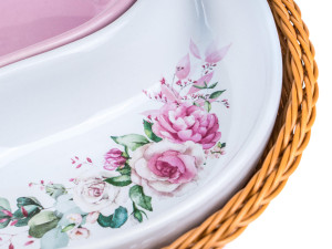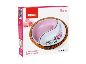 Dotaz na produkt2dílná sada keramických misek v proutěném košíku o průměru 20,5 cm ROSE. Keramika má růžovo-bílou glazuru s dekorem růže.