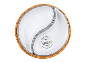 Mísa v košíku SWEET HOME o průměru 20,5 cm v proutěném PVC košíku 20,5 cm, je vhodná na podávání slaných i sladkých pochutin.