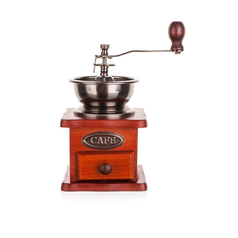 Ruční mlýnek na kávu s keramickým mechanismem, dřevěné tělo s kovovou násypkou, vyjímatelná dřevěná zásuvka na mletou kávu. Keramickou mlecí mechaniku lze nastavit na požadovanou hrubost mletí.