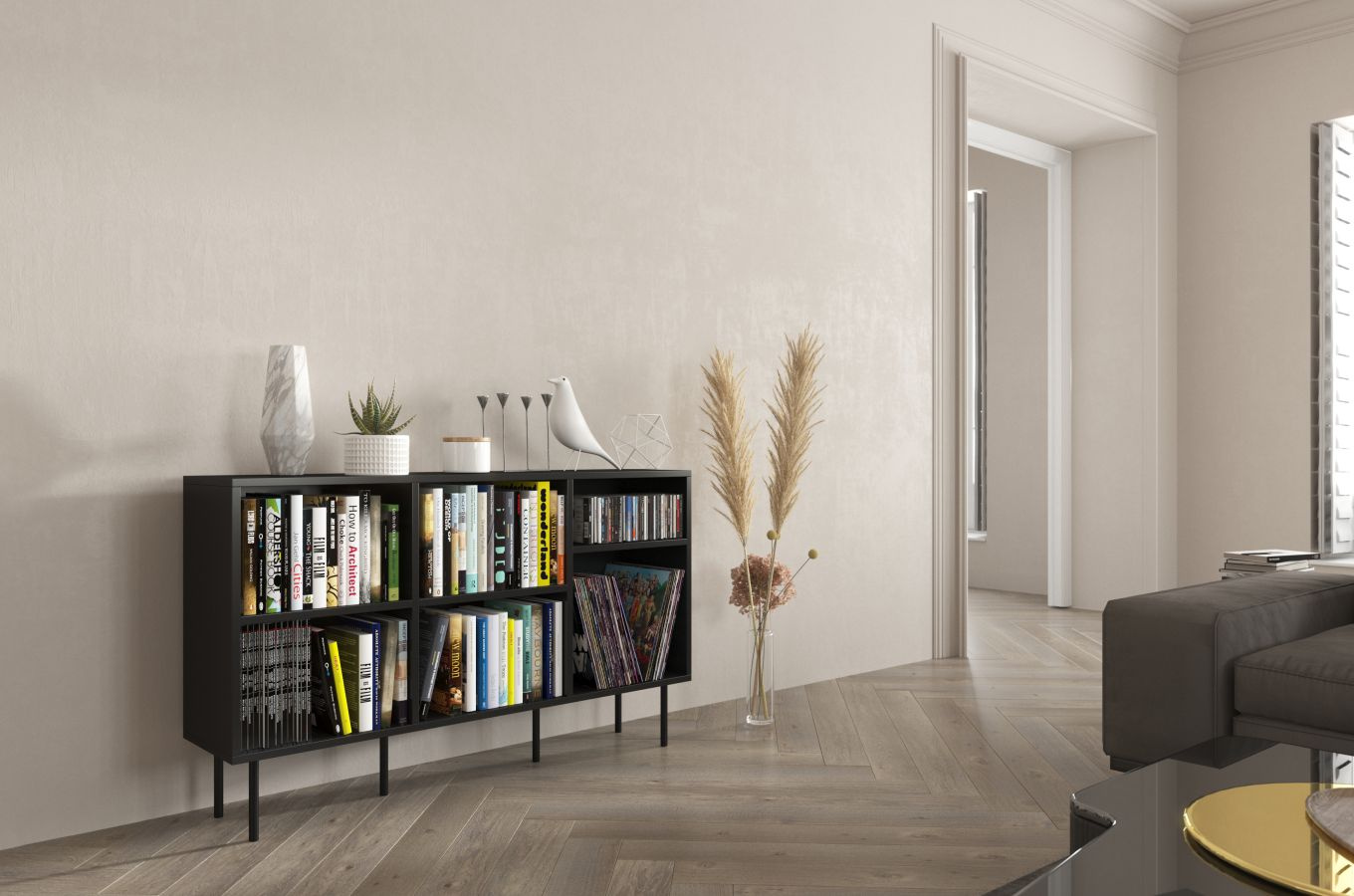 Knihovna MIRKA je kus nábytku, který doporučujeme do moderních, minimalistických a skandinávských interiérů a díky jednoduchému tvaru se snadno aranžuje.