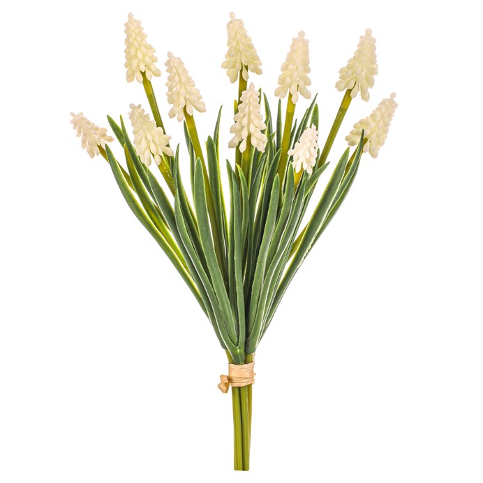 Dotaz na produktUmělá kytice modřenců v bílé barvě sestává z pěti stonků s detailně zpracovanými květy a listy z plastu. Svazek působí přirozeně díky jemné textuře a odstínům listů, které věrně napodobují přírodní vzhled. Kytice je vhodná pro dekoraci interiérů, kde přinese svěží a čistý vizuální efekt bez nutnosti péče. Svazek je pevně svázán přírodním provázkem, což usnadňuje jeho aranžování do vázy nebo dekorativního aranžmá. Ideální volba pro dlouhodobé použití v domácnostech, kancelářích či recepcích.