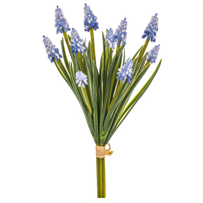 Dotaz na produktUmělá kytice modřenců v modrém odstínu přináší do interiéru svěží a přirozený vzhled bez nutnosti péče. Svazek pěti květů je vyroben z plastu, který věrně napodobuje texturu i barevnost skutečných rostlin. Díky pevné vazbě je kytice snadno umístitelná do vázy nebo dekorativního aranžmá. Vynikne v moderních i klasických prostorách, kde dodá jemný barevný akcent.
