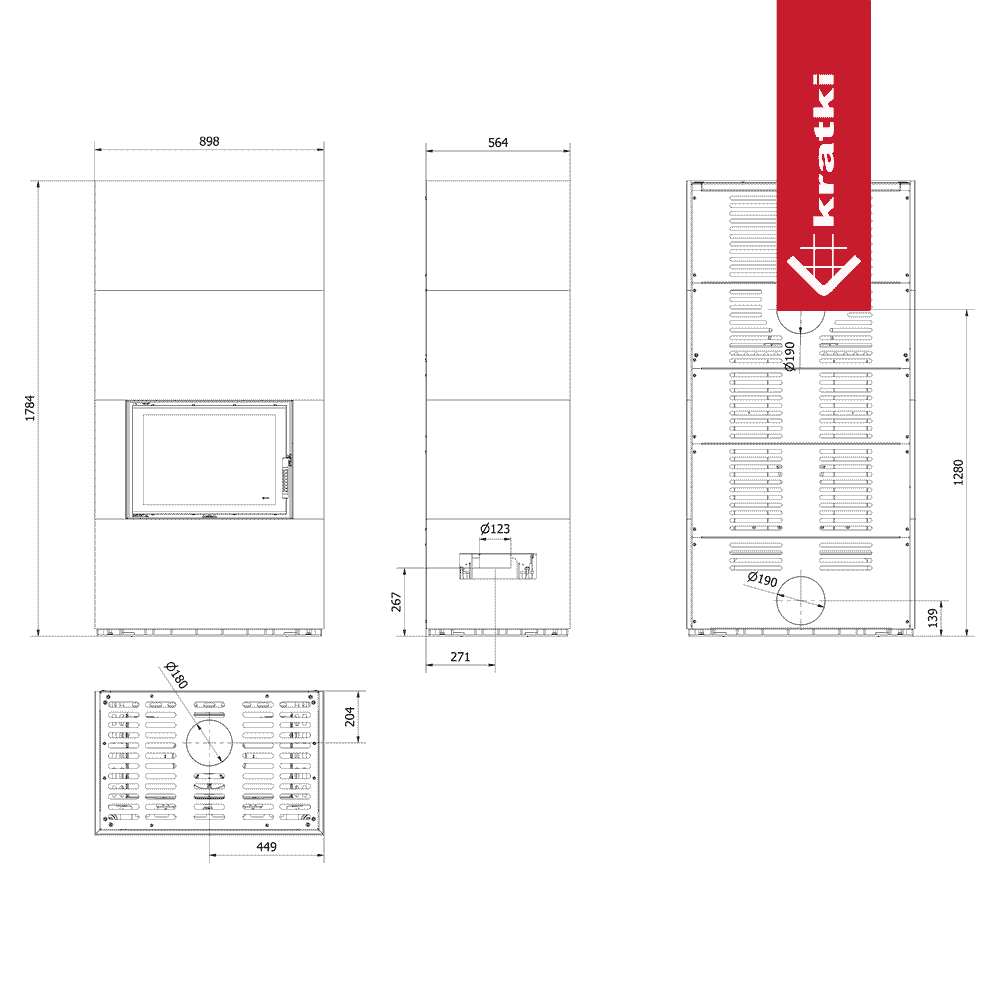 Modulární krb KRATKI FLOKI BOX 8 kW Ø 160 křemenný sintr OXIDE MORO samozavírací
