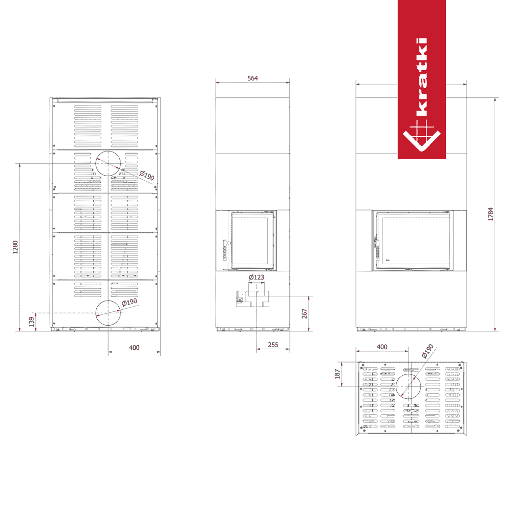 Modulární krb KRATKI FLOKI BOX levá 8 kW Ø 160 křemenný sintr FOKOS PIOKRATKI