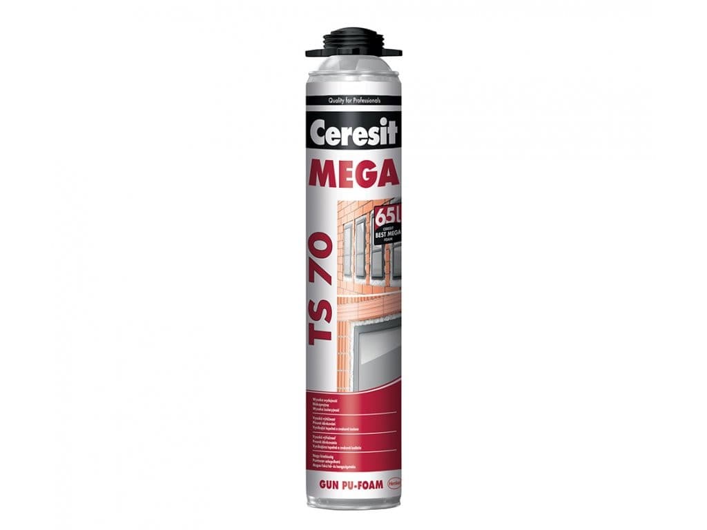 Ceresit TS 70 je jednosložková polyuretanová pěna vytvrzující vzdušnou vlhkostí vhodná pro montáž okenních a dveřních rámů, vyplňování dutin, utěsňování otvorů ve střešních konstrukcích, vytváření zvukotěsných stěn, vyplňování dutin okolo potrubí, vyplňování a izolování stěnových panelů, střešních krytin, tašek atd. Nádobka má speciální uzávěr pro aplikaci pistolí.