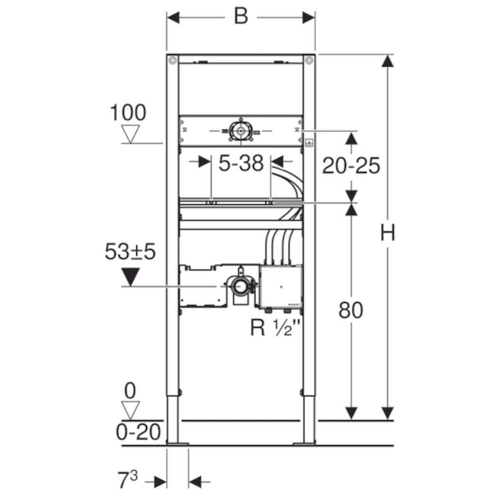• Pro umyvadlové armatury Geberit, nástěnná montáž, s