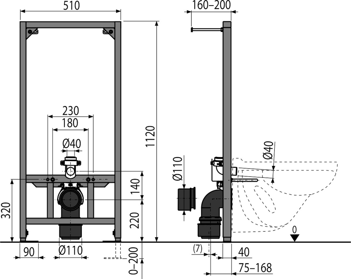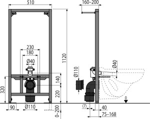 Konstrukce rámu dovoluje kotvení k samostatné dostatečně nosné sádrokartonové příčce nebo před nosnou stěnu; Nastavitelné výsuvné nohy v rozmezí 0–200 mm; Příprava na připojení držáku s DG1/2" přechodem pro bidetovací sedátka a spršky; Součástí balení koleno k připojení WC k senzoru nebo manuálnímu průtokovému splachovači; Materiál: kov ošetřený práškovou barvou