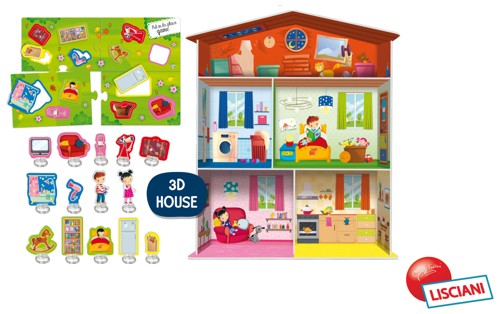 Dotaz na produktSestavte si krásný dům. Obsah balení: domeček, puzzle ve tvaru vybavení, 15 stojánků na kartičky Doporučený věk: od 3 let