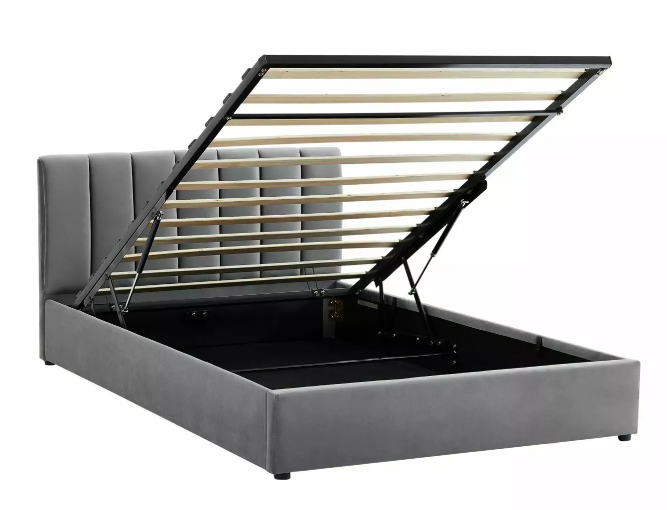 Dotaz na produkt Na splátky ještě dnesPostel s úložným prostorem, sametová látka, barva: tap.192 šedá. Součástí je rám z ohnutých lamel upevněných v flexibilních držácích. Plynové pružiny. Rozměr matrace 120x200cm (cena bez matrace).