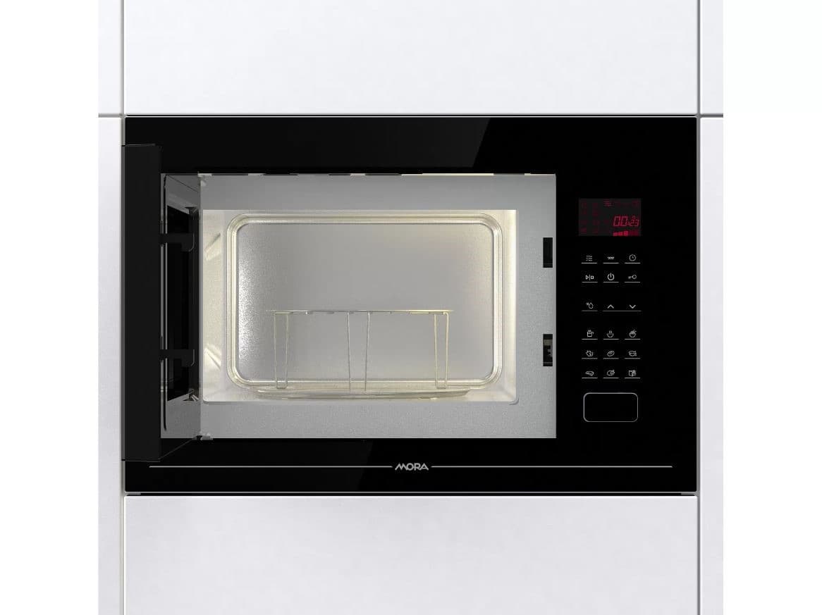 Dotaz na produkt Na splátky ještě dnesVestavná mikrovlnná trouba MORA VMT 745 B v provedení černé sklo je neocenitelným pomocníkem v každé domácnosti. Díky spojení výhod mikrovlnného ohřevu a grilu zažijte zcela nové dimenze vaření. Budete ohromeni rychlejším ohřevem nebo pečením menších kousků masa, pizzy a dalších pokrmů, které je třeba upéct do křupavé dokonalosti. Dotykové ovládání s 5 výkonovými stupni potěší svou jednoduchostí. V nerezovém vnitřku trouby o objemu 25 l je umístěn otočný talíř s průměrem 315 mm. Neustálé otáčení otočného talíře umožňuje mikrovlnám efektivně a rovnoměrně ohřívat jídlo, které připravujete, bez jakýchkoli studených míst. Vnitřek trouby lze jednoduše vyčistit díky AquaClean funkci. Otvírání mikrovlnné trouby je do boku.