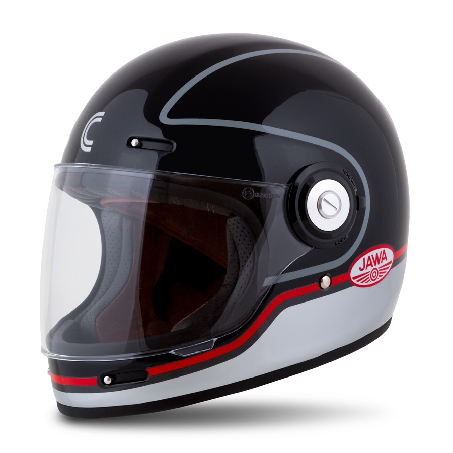 Dotaz na produkt Na splátky ještě dnesMoto přilba Cassida Fibre je integrální přilba se sklolaminátovou skořepinou, bezpečnostními standardy moderních přileb a designem cíleným na uživatele veteránů, kategorie "neo retro" a moderních klasických motocyklů. Grafika vznikla ve spolupráci s výrobcem motocyklů JAWA. U přilby dále potěší především velký zorný úhel téměř srovnatelný s otevřenými helmami. Zapínání je pak provedeno také klasicky - na dvojité DD kroužky.