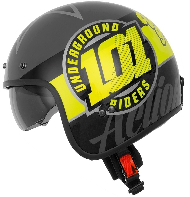 Dotaz na produkt Na splátky ještě dnesMoto přilba Cassida Oxygen 101 Riders je otevřená helma ideální například na choppery nebo skútry. Polykarbonátová skořepina je zárukou vysoké bezpečnosti. Praktická sluneční clona přijde vhod při jízdě proti ostrému slunci. Líbivý retro design s originální grafikou může být doplněn o odnímatelné přední stínítko. Zapínání helmy je vyhotoveno snadno nastavitelnou rychlopřezkou, která ladí se sportovním a funkčním vzhledem přilby samotné.