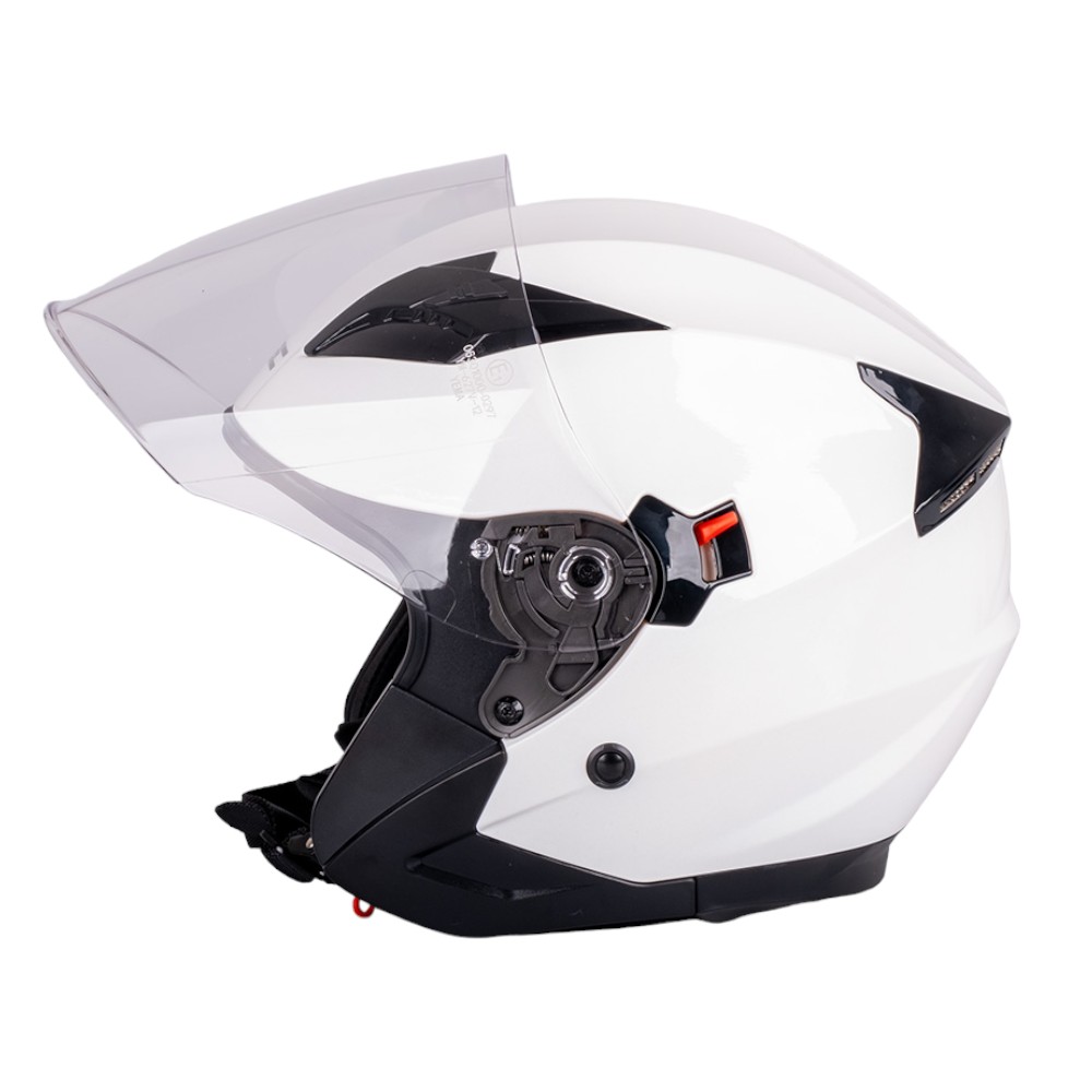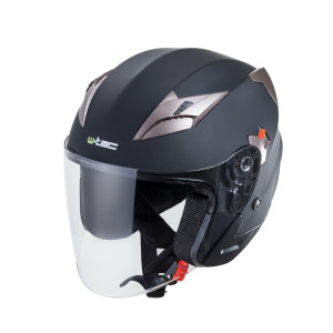 Dotaz na produkt Na splátky ještě dnesMoto přilba W-TEC Putta je moderní otevřená helma určená k jízdě na skútrech i pomalejších cestovních motocyklech. Má široké odklopné hledí doplněné o samostatně výsuvnou sluneční clonu, která chrání proti ostrému slunečnímu záření během jízdy. Tu lze pohodlně ovládat z vnějšku pomocí páčky na boku helmy.