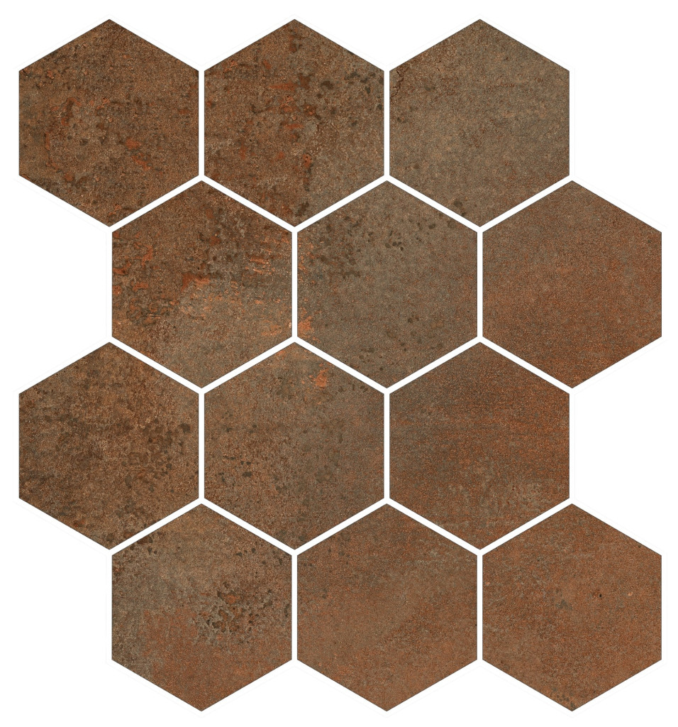 PARAMETRY:Počet v balení: 4 ks Druh výrobku: mozaika Materiál: keramika Určení: exteriér i interiér Barva popisná: Corten Barva základní: hnědá Design: metalický Povrch: mat Jakost: I....
