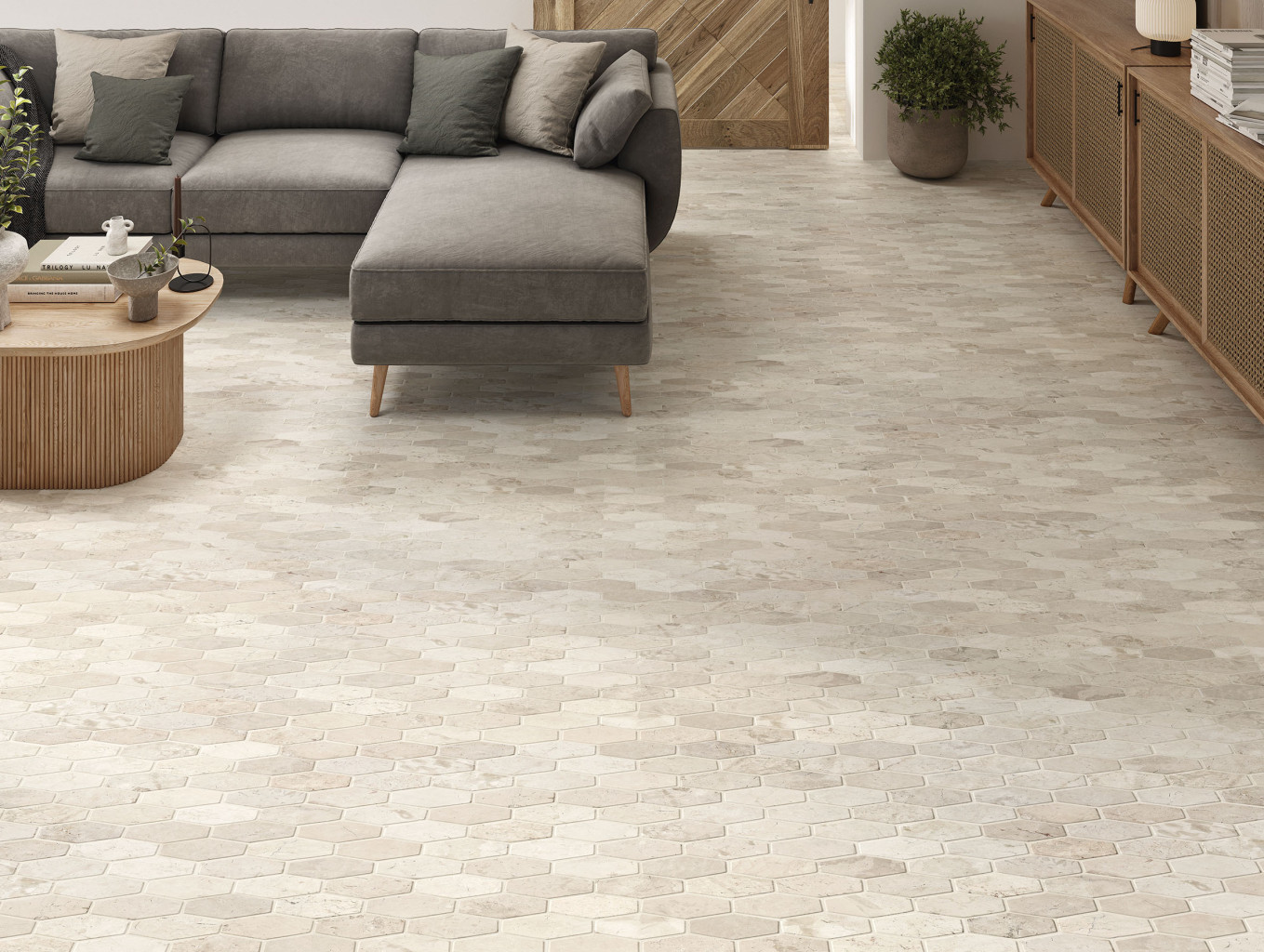ÚvodPodlahovinyDlažbaMozaika Mosavit Hexagonal beige 25x37 cm mat KANAWA