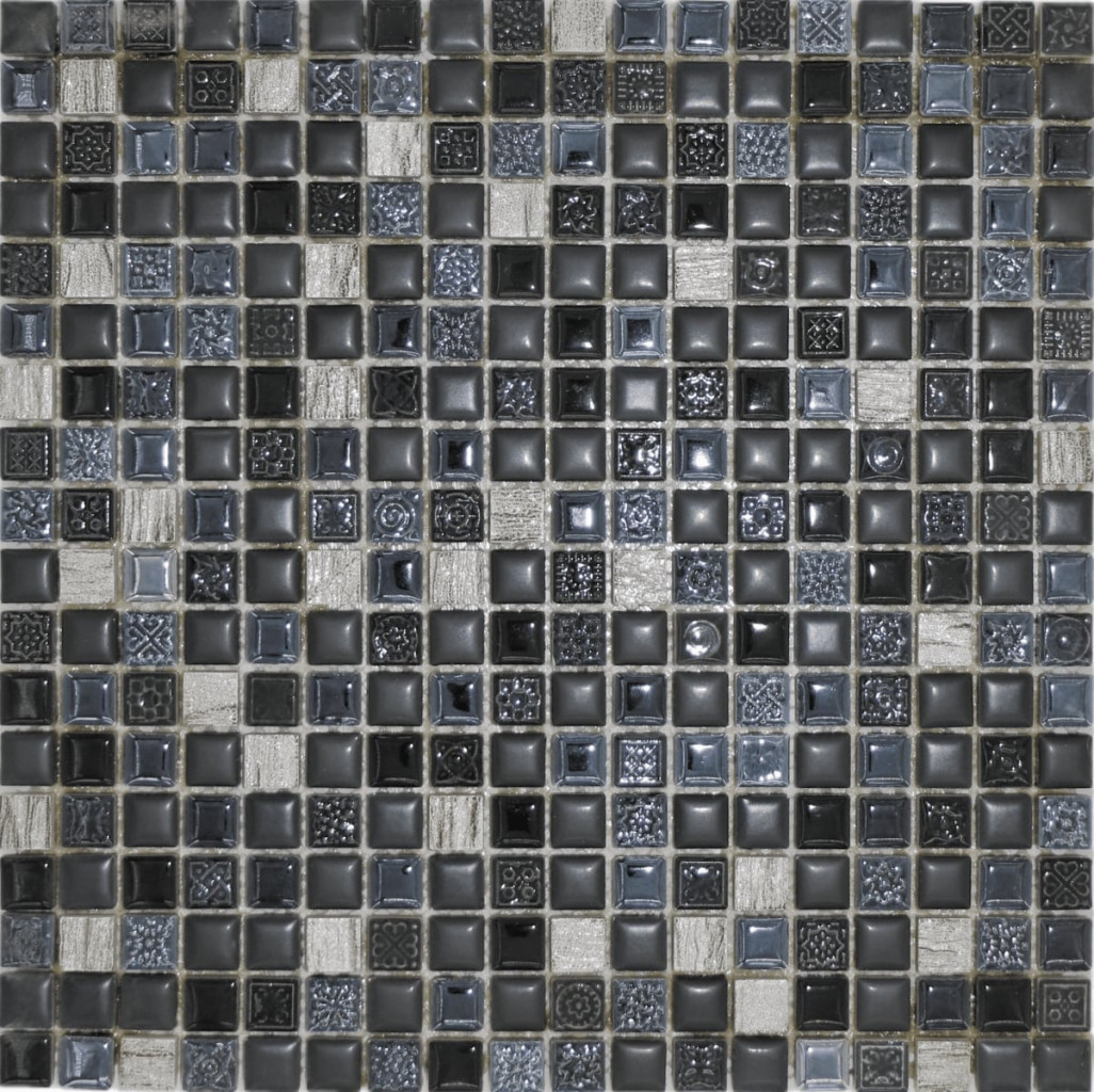 PARAMETRY:Balení: 0,99 m2Hmotnost balení: 15,8  kgPočet v balení: 11 Druh výrobku: mozaika Materiál: keramika, pryskyřice Určení: interiér Barva popisná: černá Barva základní: mix barev Povrch:...