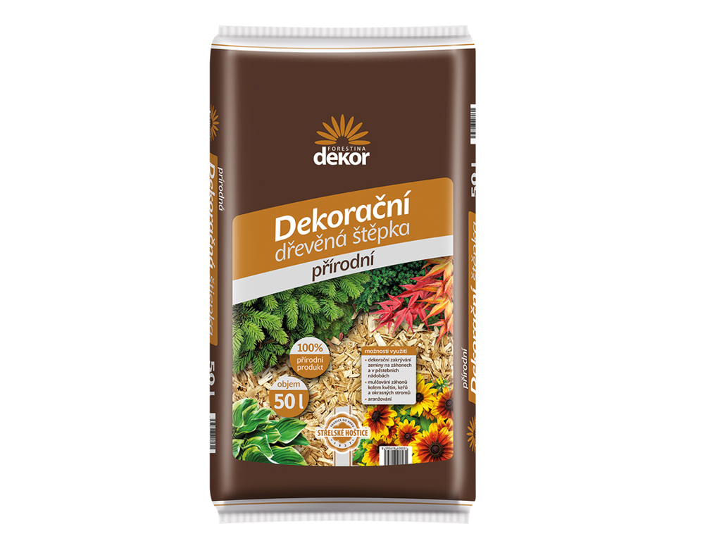 Dotaz na produktDekorační dřevěná štěpka je vyrobena z nadrceného kvalitního dřeva z různých druhů jehličnanů a je zbavena kůry. Lze ji využít jako vysoce hodnotný krycí a dekorační materiál při úpravách nejen na zahradě. Bezbarvé přírodní provedení umožňuje přirozené začlenění do okolního prostředí. Objem balení: 50 l.