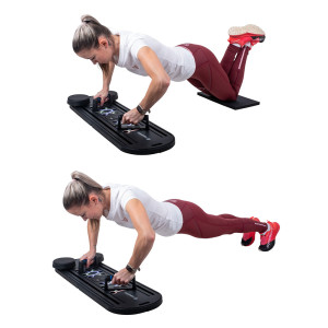 Protiskluzová pěnová madla, pevné expandéry s kovovými karabinami a stabilní konstrukce s nosností až 200 kg ti zaručí bezpečný a komfortní trénink. V balení najdeš kromě desky i měkkou podložku pod kolena, která je měkká skoro jako obláček, přídavnou opěrku na ruce, dva úchyty na kliky, expandéry a dvoudílnou tyč – zkrátka vše, co potřebuješ k pestrému procvičení celého těla.