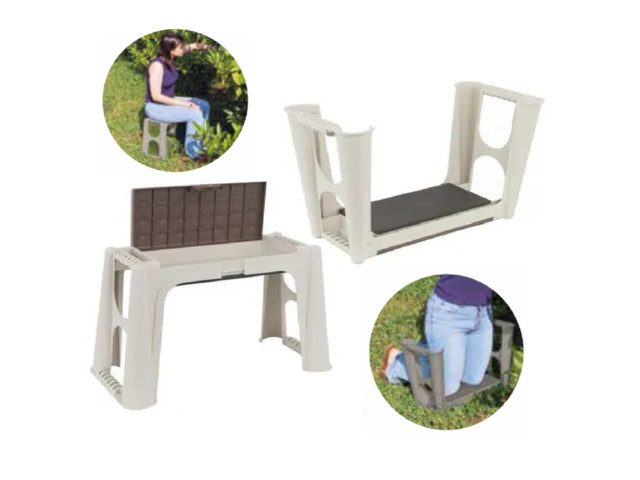 Dotaz na produktVíceúčelová stolička poslouží nejen na zahradě, ale najdete pro ni uplatnění i v domácnosti nebo dílně. Má praktickou schránku na nářadí. Můžete na ni sedět nebo klečet. V případě klečení je opatřena měkkou pěnovou gumou, aby snížila tlak na kolena a postranice jsou uzpůsobeny jako podpěry pro lepší vstávání z kleku. Rychlá montáž bez nářadí.