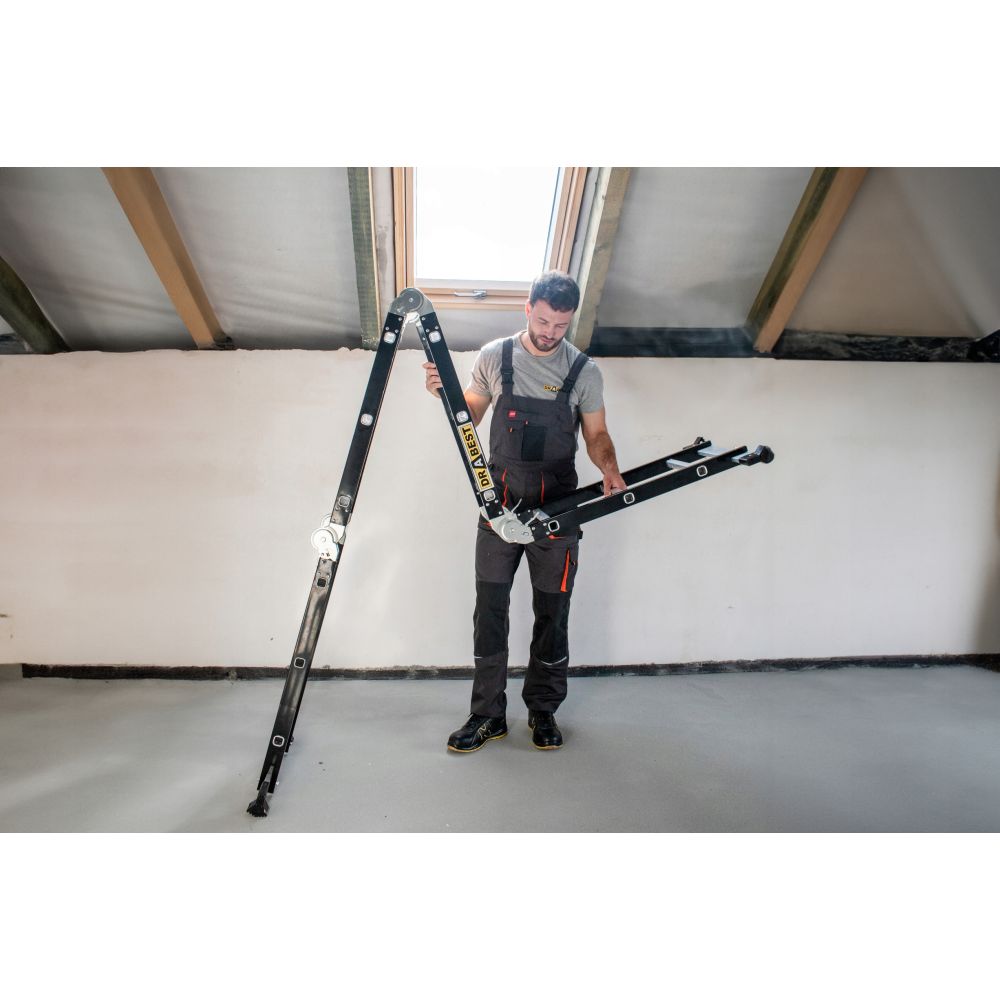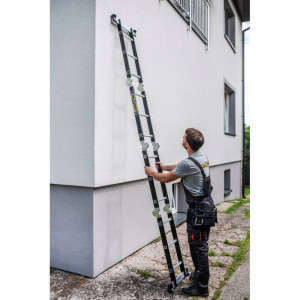 Nezáleží na tom, jestli jste profesionál nebo kutil, tento žebřík bude zcela jistě nepostradatelným pomocníkem při jakékoliv práci. Díky pohyblivým kloubům ho můžete sestavit v 7 různých kombinacích.