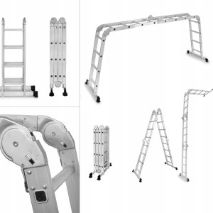 Kompaktní, pevný a univerzální kloubový žebřík, který lze sestavit v 7 různých kombinacích. 4x4 příčky, výška plošiny 1,15 m, max. pracovní výška 5,10 m, nosnost 125 kg. Snadno přenosný a zcela multifunkční žebřík pro práci ve výškách. Vhodný pro každodenní domácí použití, kolem domu nebo na zahradě.