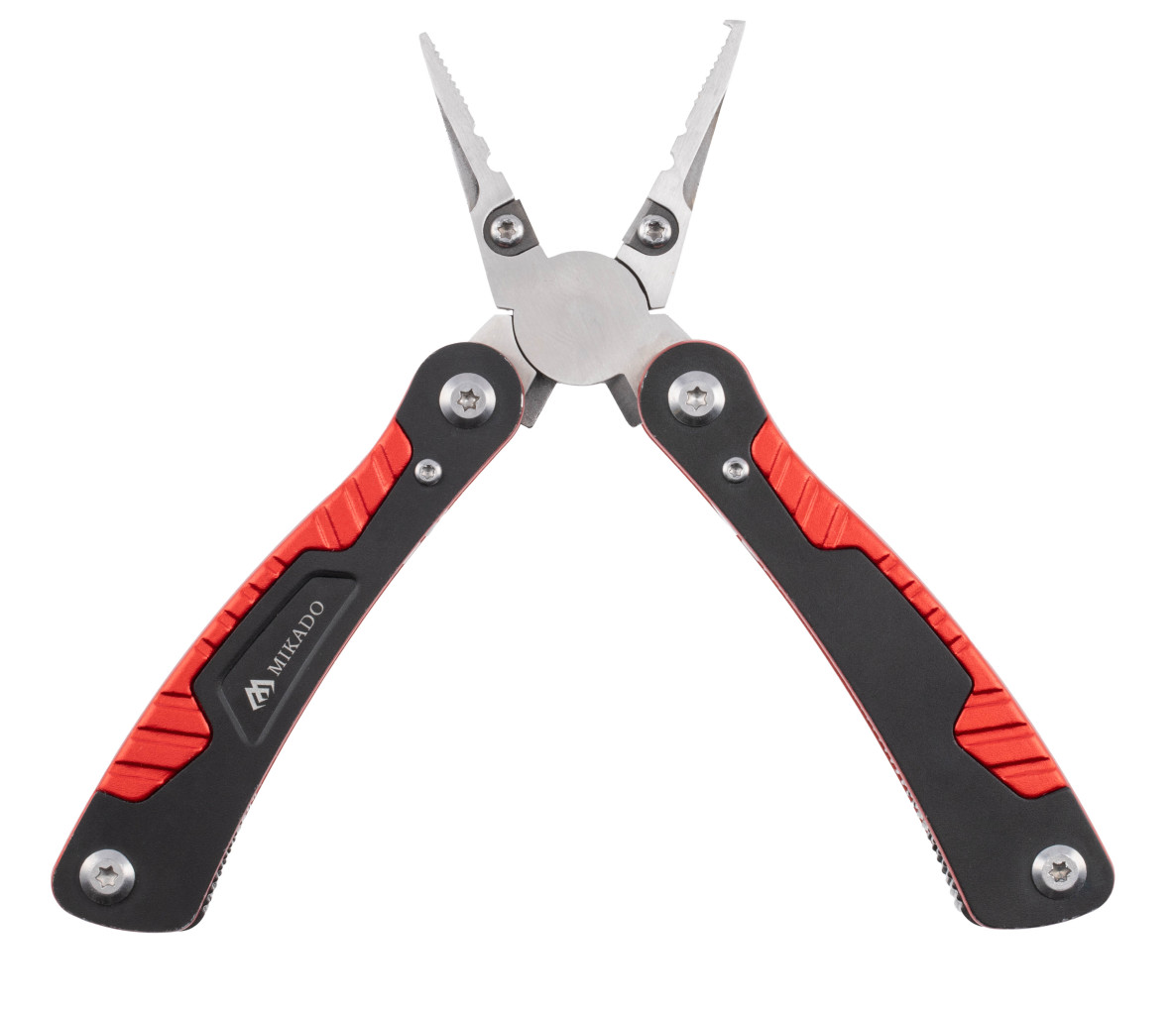 MIKADO Multitool 12v1 je spolehlivý a praktický pomocník, který kombinuje dvanáct různých nástrojů v jednom kompaktním těle. Obsahuje mimo jiné nůžky, šroubovák, otvírák na konzervy, pilník a další funkce užitečné při rybolovu i mimo něj. Díky své velikosti se snadno vejde do kapsy, rybářské tašky nebo boxu a je vždy připraven pomoci, když je potřeba něco rychle vyřešit v terénu.
