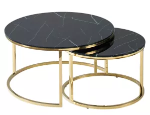 set, deska: tvrzené sklo, rám: nerez, barva: černá, mramorový efekt / zlatá