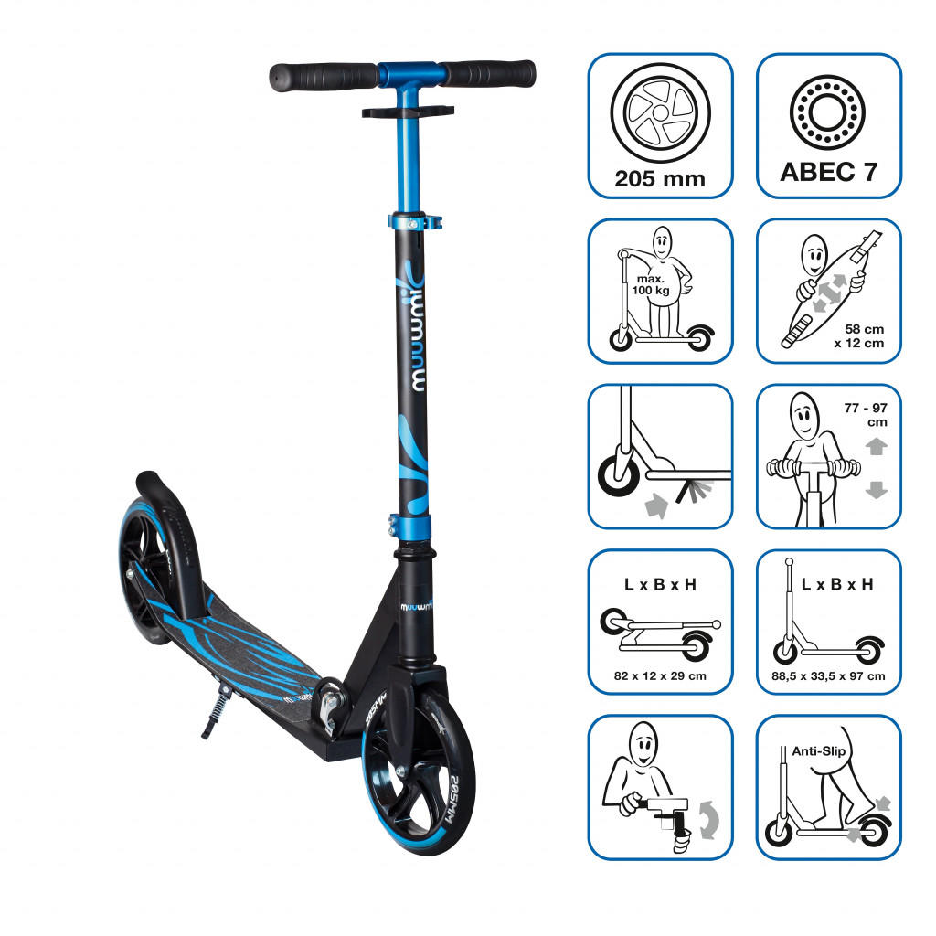 • Stylový design: S touto koloběžkou v modro černé barvě zazáříte.