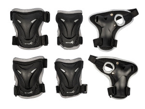 Součástí balení: chrániče zápěstí, chrániče kolen, chrániče loktů – celkem 6 ks chráničů