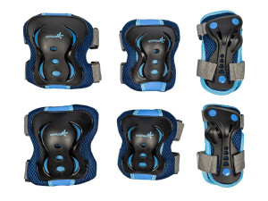 Součástí balení: chrániče zápěstí, chrániče kolen, chrániče loktů – celkem 6 ks chráničů