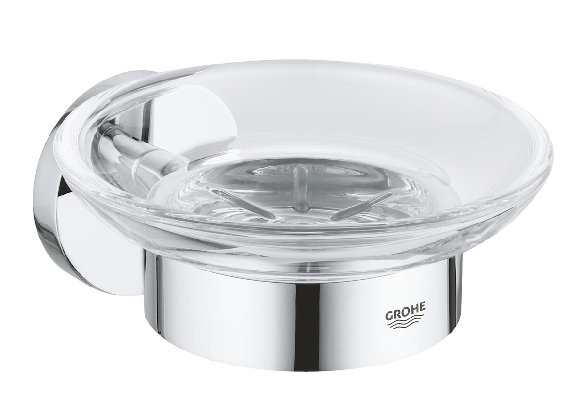 Držák GROHE Essentials s talířkem na mýdlo. Německá výroba, vysoce kvalitní kov s chromovou povrchovou úpravou a podomítkové upevnění.