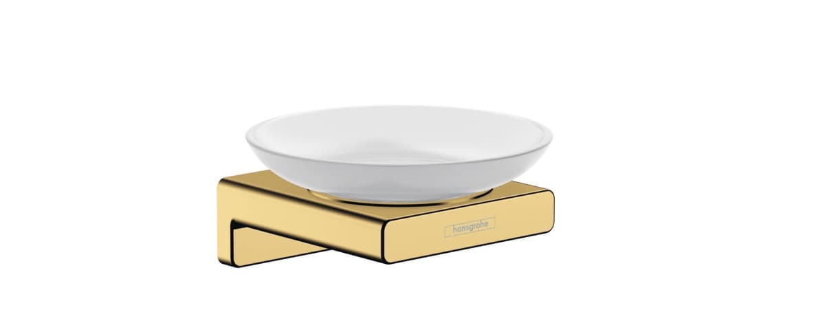 A kvalita hansgrohe je příslibem vynikajícího designu: Miska na mýdlo AddStoris je vyrobena ze skla a při čištění ji lze snadno odejmout. Držák na stěnu je vyroben z kovu s povrchovou úpravou ve vzhledu leštěného zlata a je jedním z barevných programů řady speciálních povrchových úprav hansgrohe pro baterie (FinishPlus). Aby všechno dokonale ladilo.