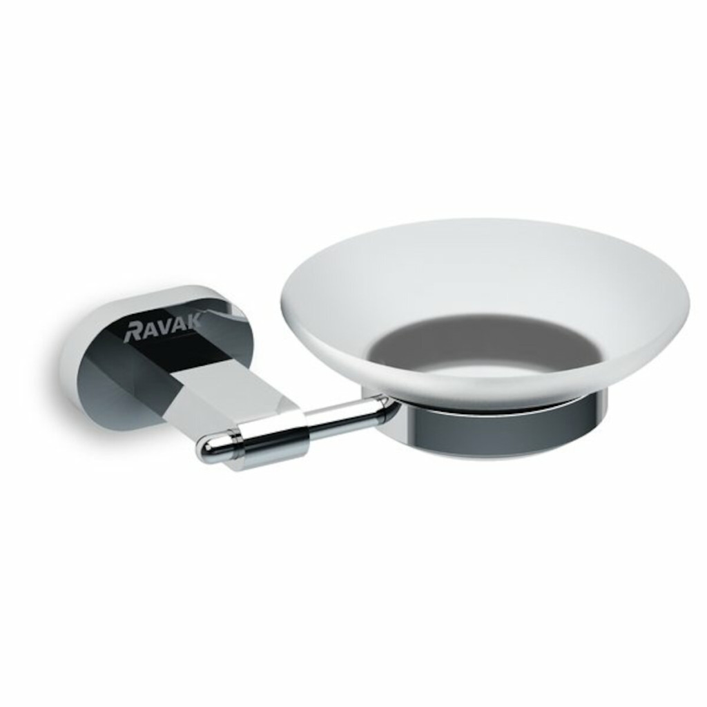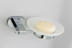 Dotaz na produktChromová mýdlenka se skleněnou mističkou od Ravaku.