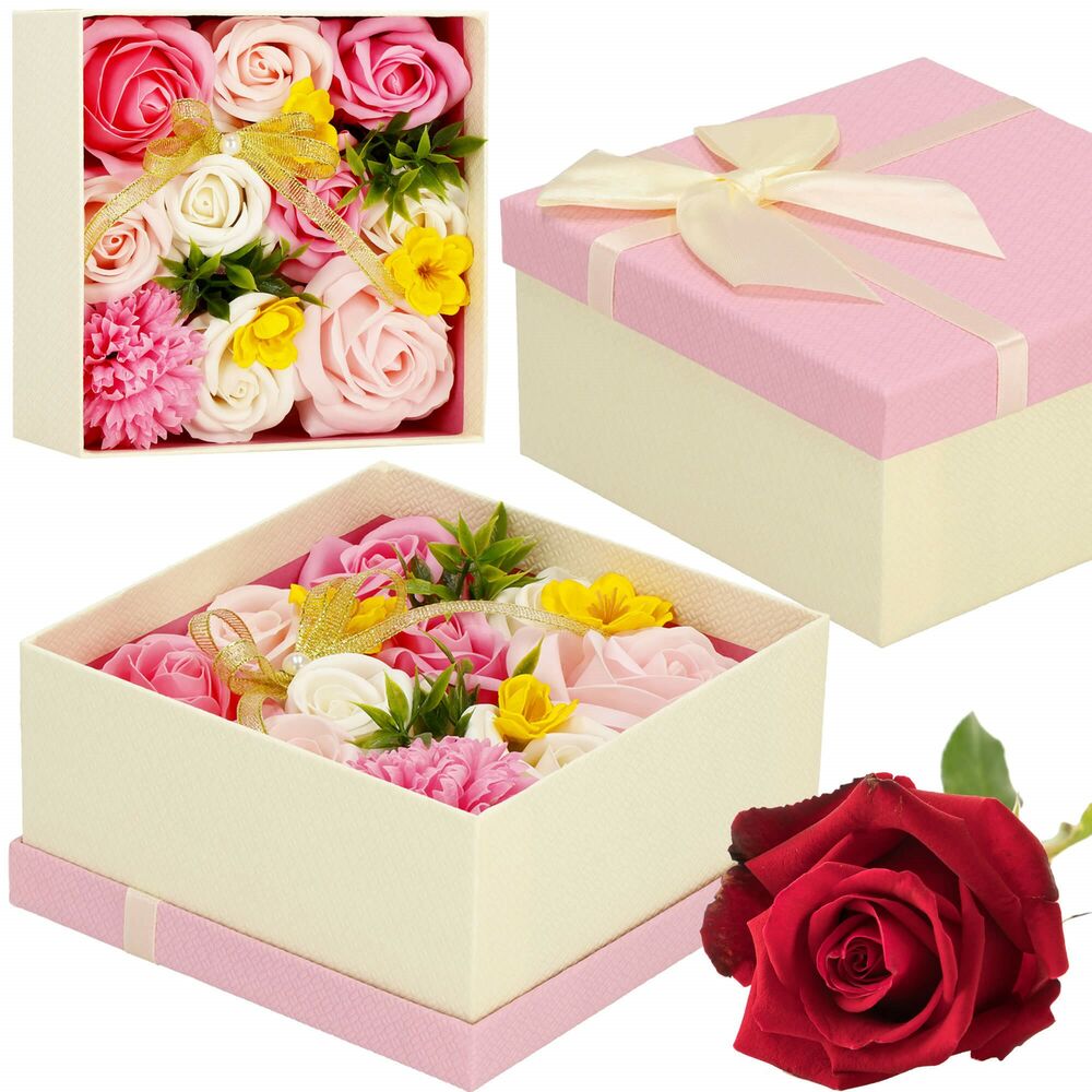 Elegantní mýdlové květiny uložené v dárkové krabičce představují originální a voňavý dárek. Jemná vůně růže navodí příjemnou atmosféru a květy se při kontaktu s vodou postupně rozpouštějí, takže jsou vhodné i pro zpříjemnění koupele. Květiny jsou připevněny na měkkém podkladu a lze je snadno vyjmout. Víčko i vnitřek krabičky zdobí dekorativní stuhy, které podtrhují luxusní vzhled celé sady.