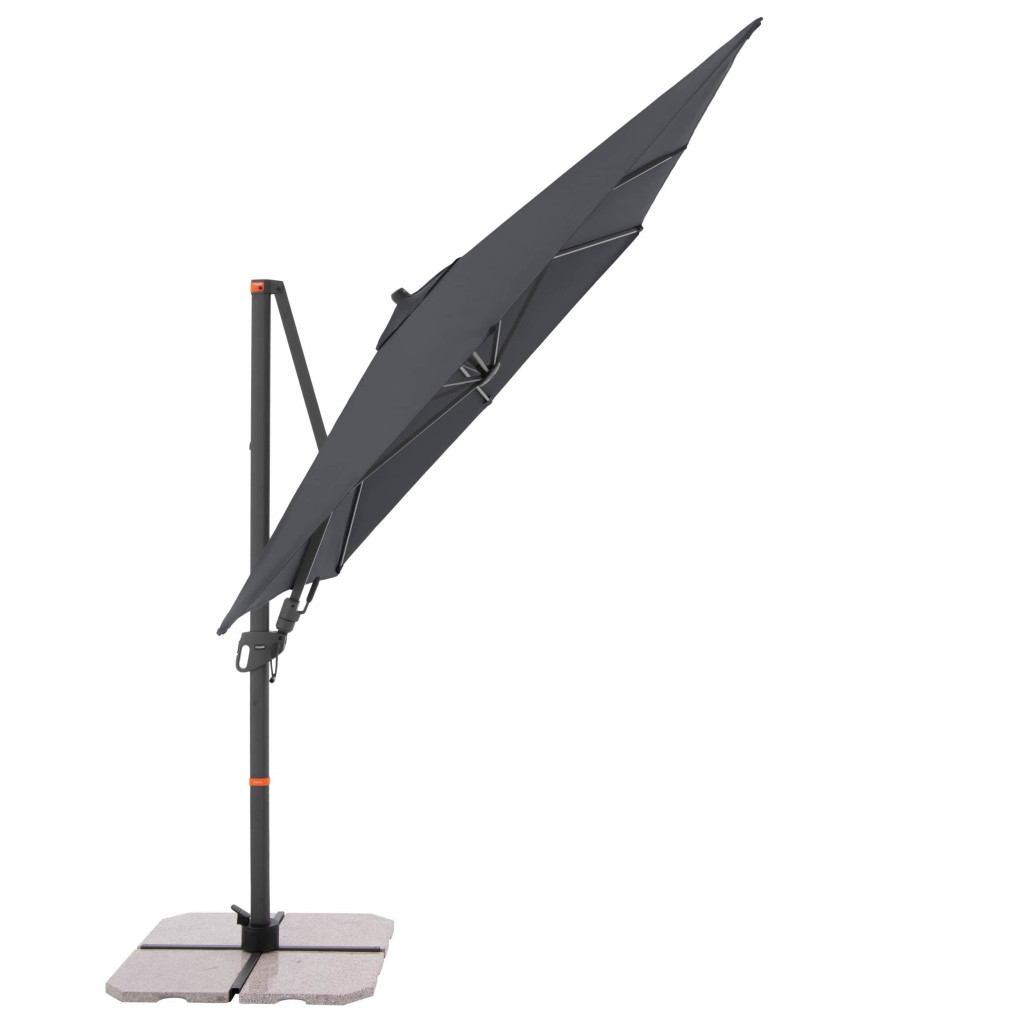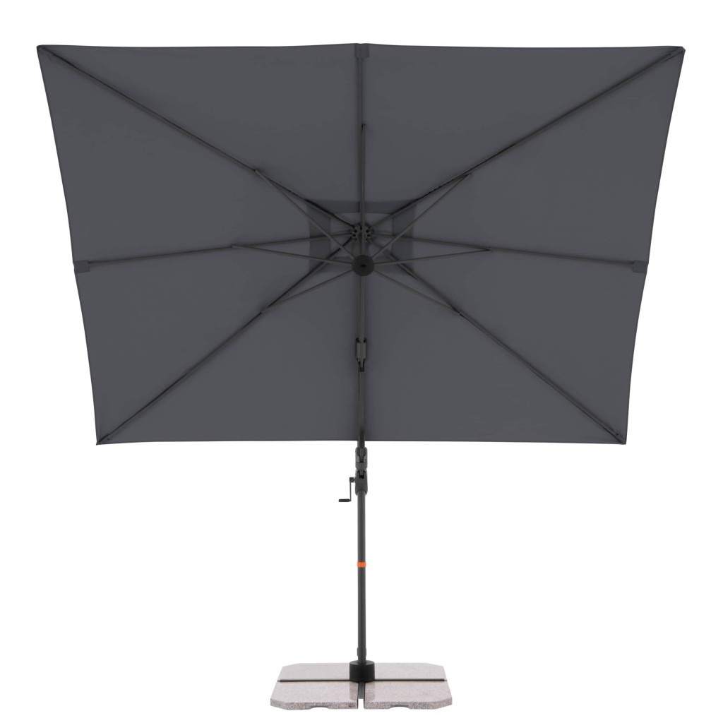 Díky obdélníkové střeše je slunečník zvláště vhodný pro zastínění zahradního nábytku. Slunečník lze také otáčet o 360 stupňů, osově natáčet na obě strany a naklápět dozadu v sedmi polohách.