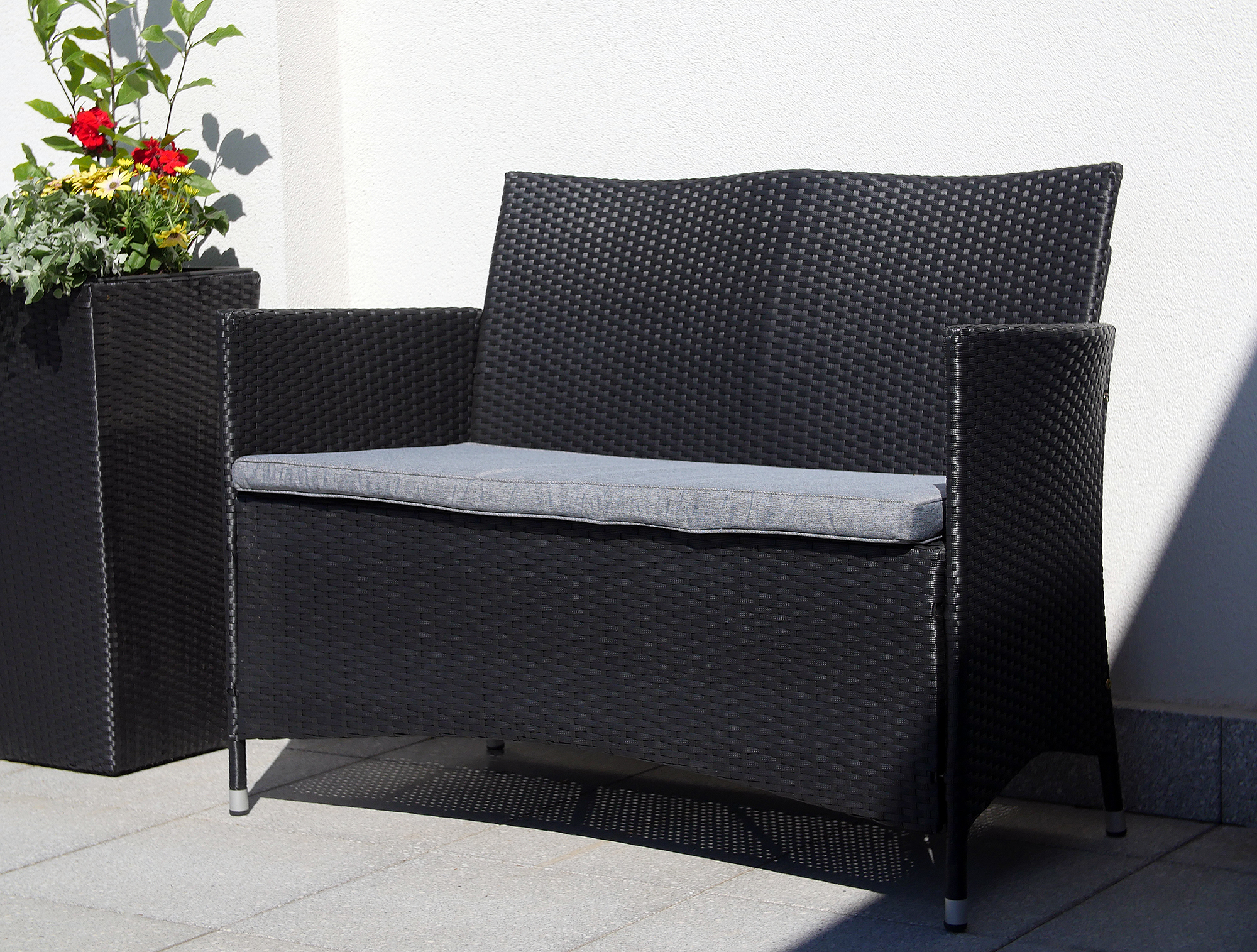 Umělý ratan má rovněž vysokou nosnost a barevnou stálost. Lavice si tedy i po letech uchovává svůj okouzlující vzhled a sytou černou barvu.