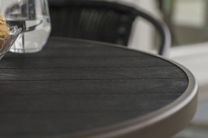 Stolek Nina disponuje pevnou ocelovou konstrukcí, která byla povrchově ošetřena proti rzi. Kulatá deska stolu o průměru 60 cm je vyrobena z umělého dřeva artwood. Artwood je moderní syntetický materiál, který věrně imituje kresbu dřeva. Na rozdíl od skutečného dřeva nevyžaduje údržbu. Skvěle odolává povětrnostním vlivům a nepřízni počasí.