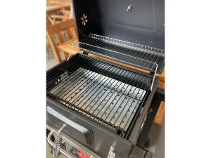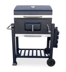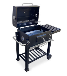 K přípravě pokrmů slouží 2 grilovací rošty, každý o rozměru 28 x 42,5 cm. Oceníte praktický odkládací rošt na hotové pokrmy pod víkem. Teplotu uvnitř grilu snadno zkontrolujete teploměrem na víku. Teplotu můžete regulovat odklopením víka. Výšku topeniště lze nastavit pomocí kličky na čele grilu hned vedle dvířek, které slouží k přikládání dřevěného uhlí. Průduchy na bocích slouží k regulaci ventilace vzduchu uvnitř. Zásuvka ve spodní části je potom určena k zachytávání popela. Gril je na kolečkách, takže s manipulací a stěhováním nebudete mít problém. Praktická police na boku a odkládací prostor v podnoží jsou ideální pro odkládání grilovacího náčiní a vybavení.