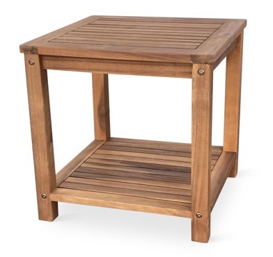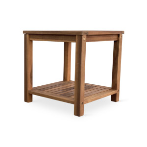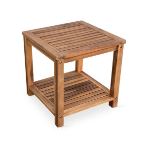 Sestava zahrnuje zahradní stolek LOTTO, který je vyrobený z tropického akáciového dřeva. Malý stolek LOTTO vyžijete jako odkládací stolek k zahradním židlím. Zcela jistě oceníte 2 plochy pro odložení občerstvení nebo dalších drobností. Malá deska o rozměru 45 cm x 45 cm a praktická police v dolní části konstrukce nabídnou dostatek odkládacího prostoru.