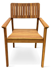 Balkonový stolek doplňují stohovatelná křesla LUCY s područkami vyrobená z kvalitní exotické dřeviny akácie. Křeslo disponuje prostorným sedákem o rozměrech 46 x 48 cm. Křesla LUCY je možné stohovat a nezaberou tak při uložení mnoho místa, kdy je jednoduše naskládáte na sebe. Zvolená poměrně robustní konstrukce není v kategorii akáciového nábytku obvyklá.