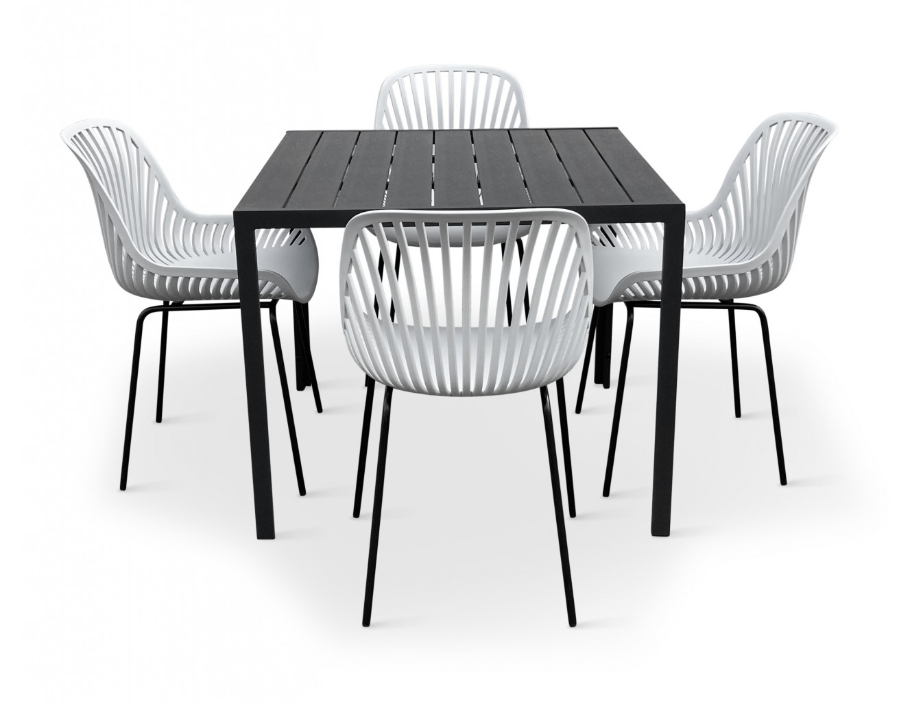 Dotaz na produkt Na splátky ještě dnesModerní jídelní sestava na zahradu z téměř bezúdržbových materiálů - kovu, polypropylenu a umělého dřeva artwood pro 4 osoby. Sestavu tvoří a 4x